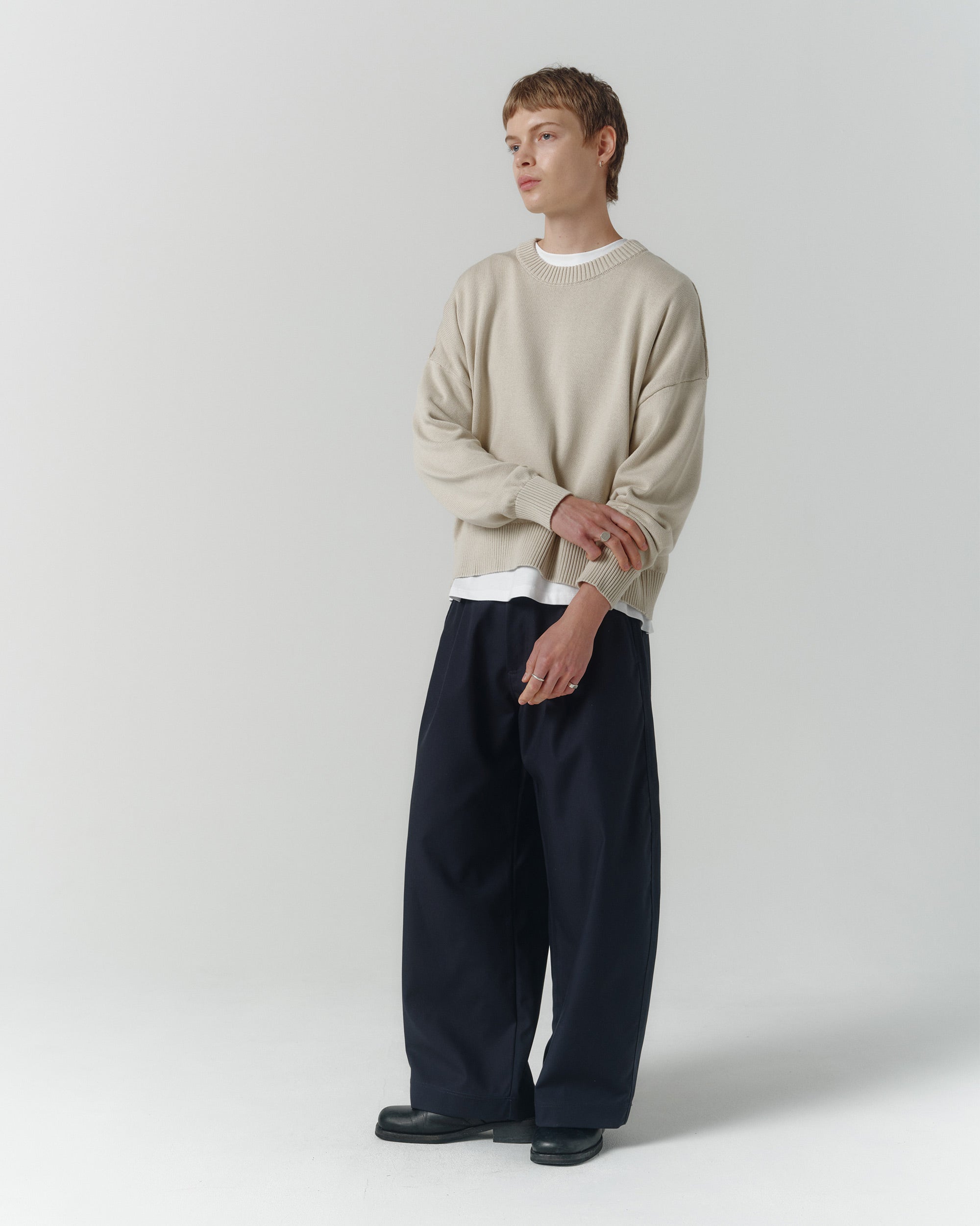 The Cropped Organic Knit is a relaxed silhouette with exaggerated dropped shoulders and elongated sleeves that create a stack over the wrist. Knitted in Vietnam from Australian-grown Good Earth Cotton® yarn, in a mid-weight 7-gauge construction. Designed to a refined cropped length that finishes neatly at the waist.