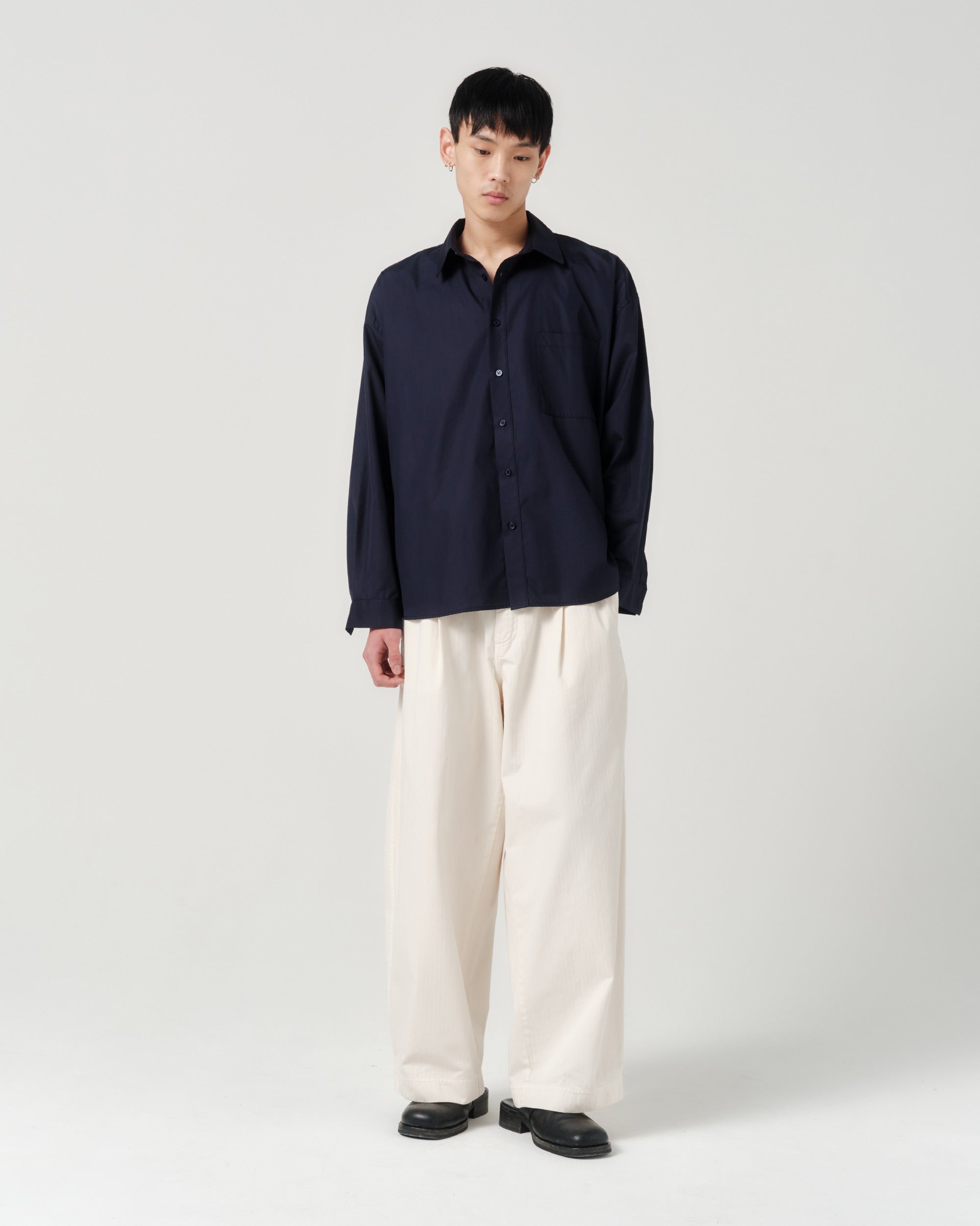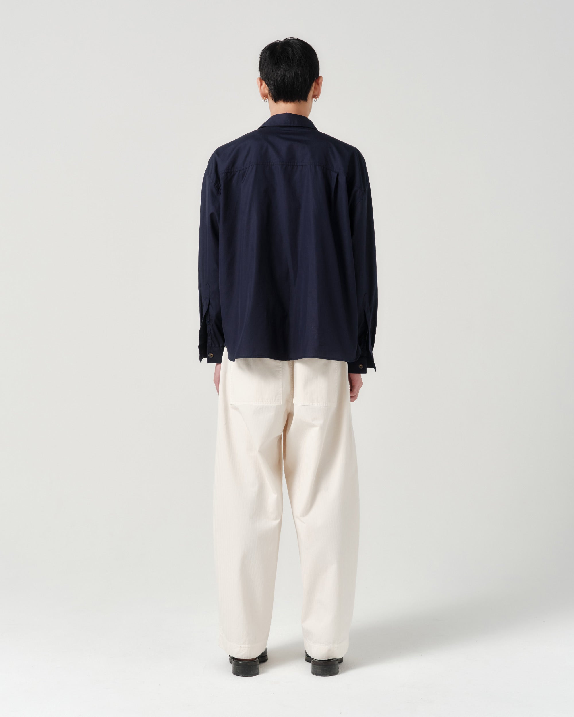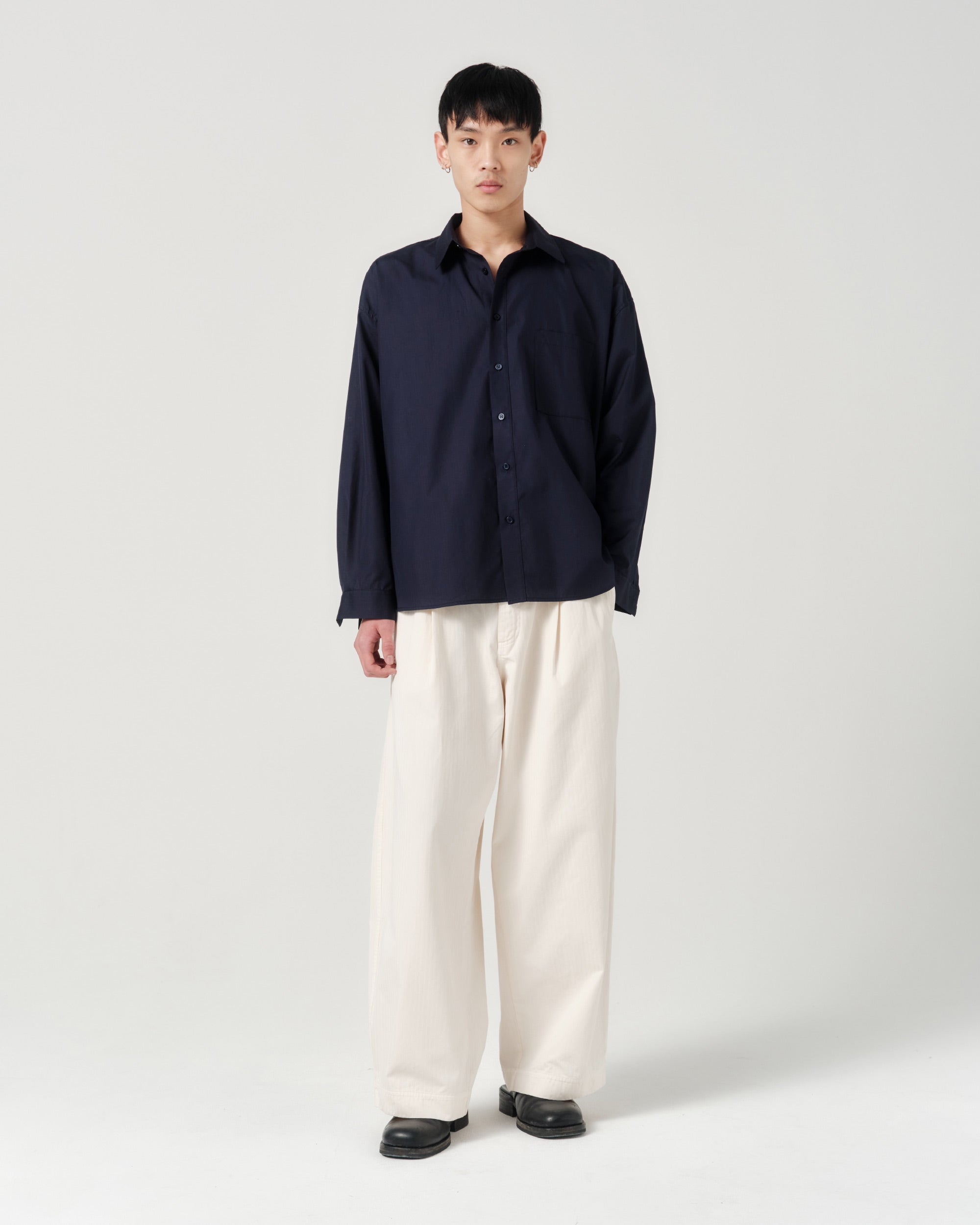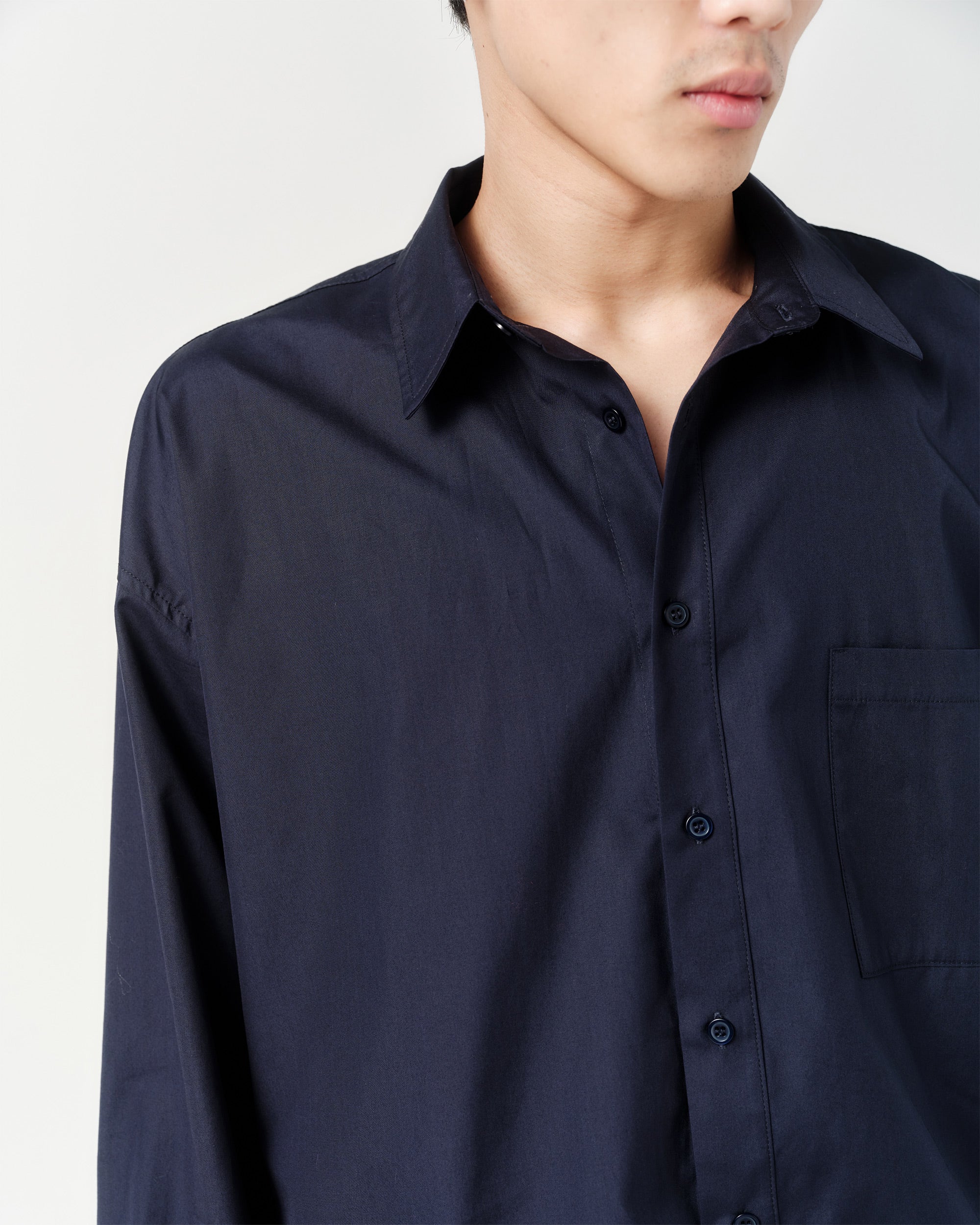 The Big Shirt is cut from lightweight, organic cotton poplin. The oversized cut features drop shoulders and a wide body, allowing the shirt to fall away from the frame with ease. The crisp poplin and oversized cut, pair for a distinct silhouette.