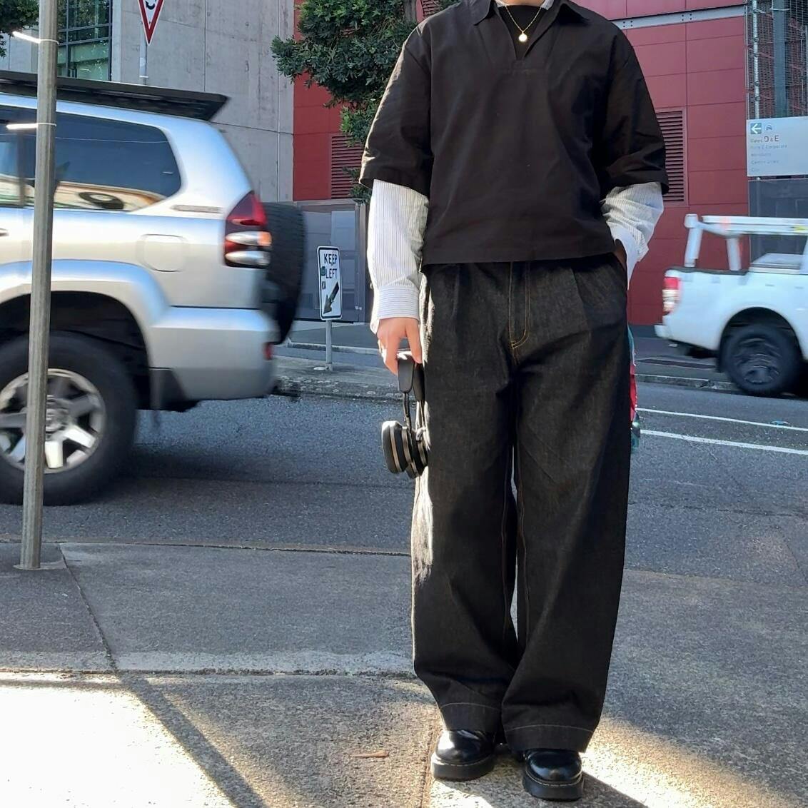 Our signature silhouette cut from a European cotton herringbone. This iteration has been enzyme washed and garment dyed to accelerate the fabric’s aging process, creating a worn-in, vintage feel with a soft, fluid drape. Cut with a high rise, full length, voluminous leg and finished with sharp single pleats. The garment dying process gives each pair a unique depth of colour, age and character.
