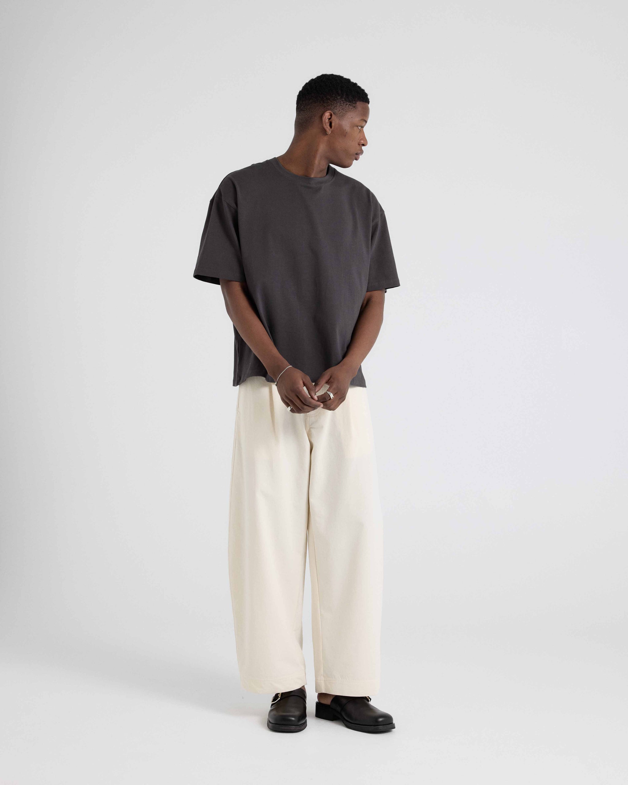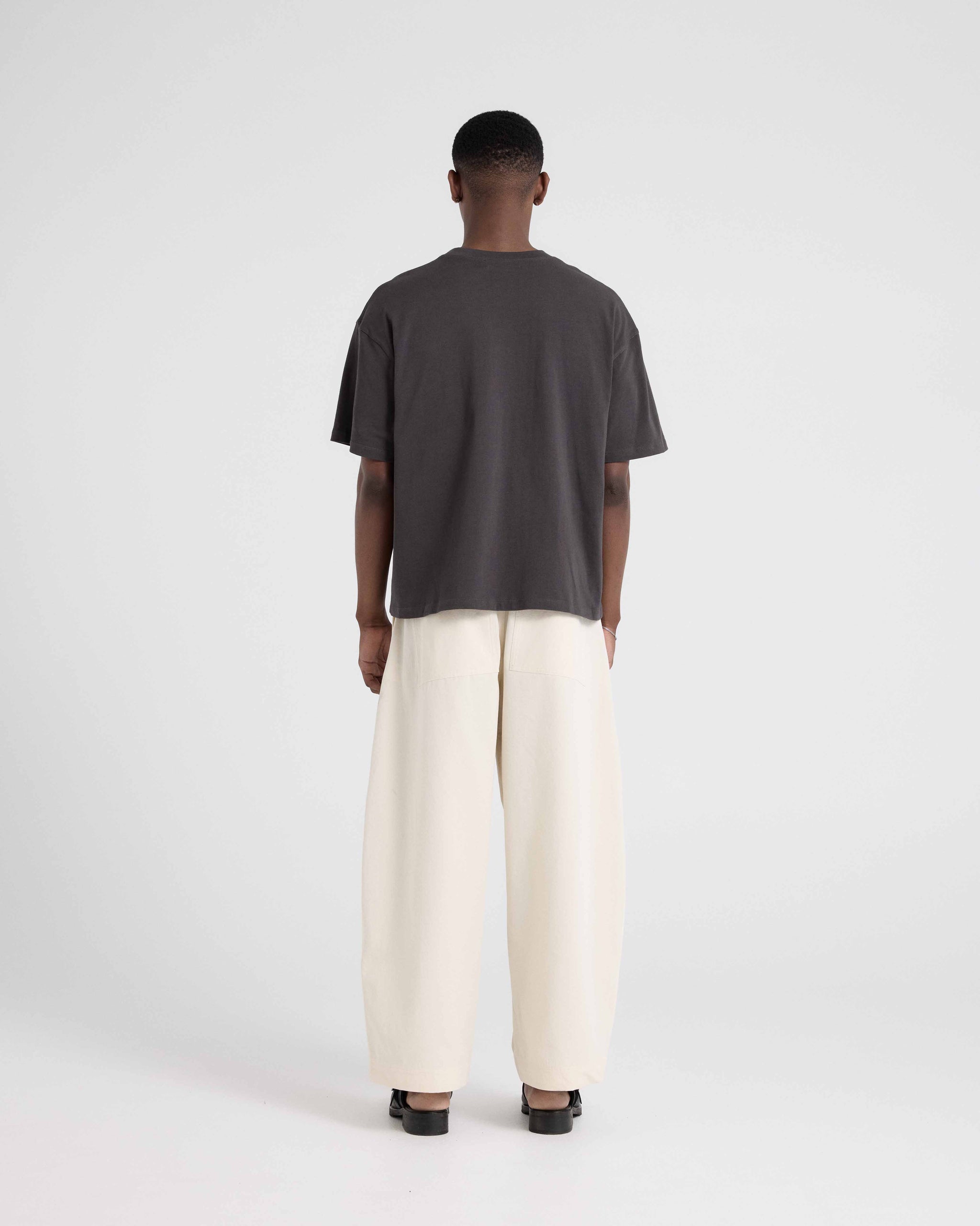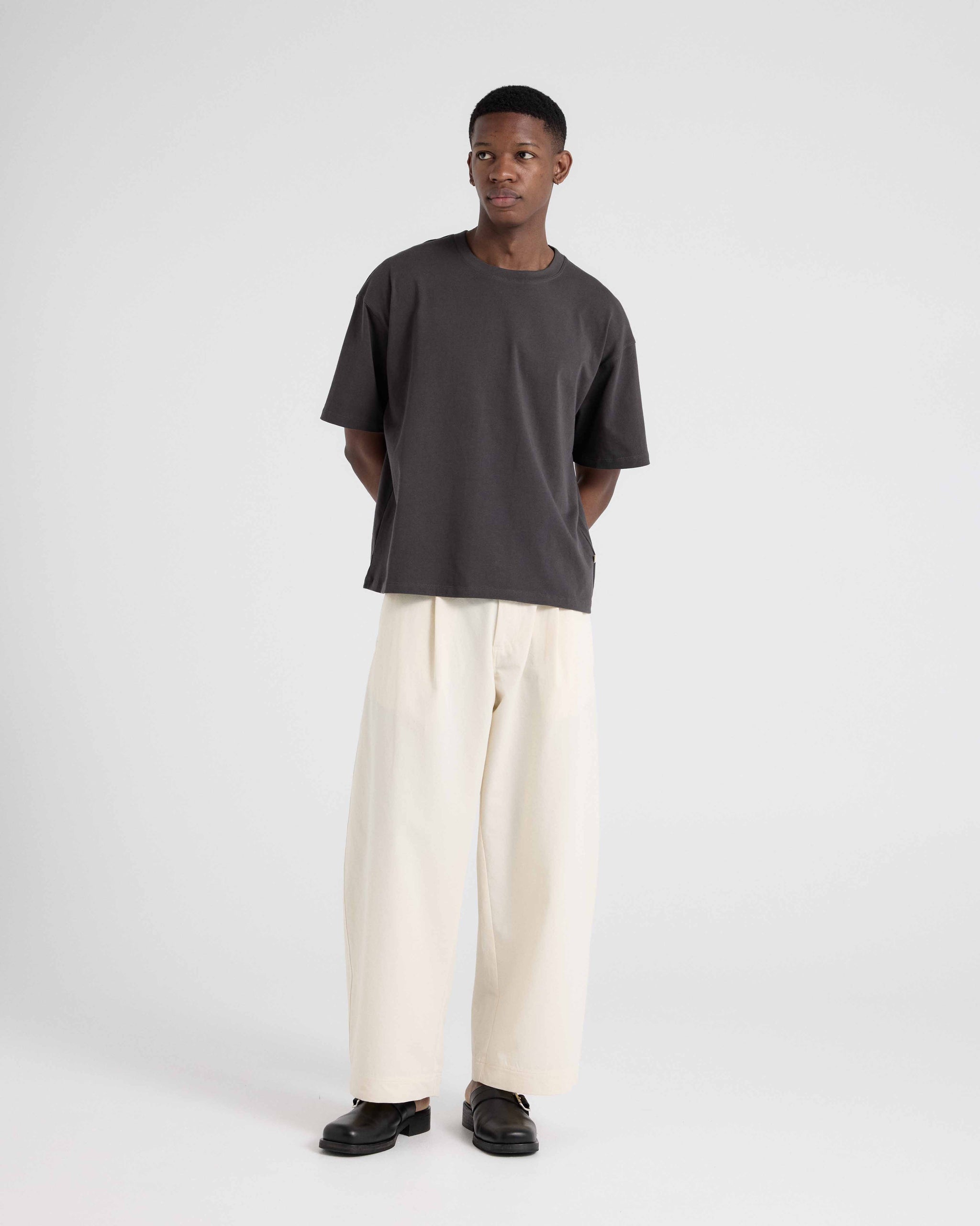 Our Essential T-Shirt is cut from 220gsm 100% Good Earth Cotton® jersey, treated for a soft touch feel. Designed with relaxed shoulders, a wide body and a waistline finish for a boxy fit.