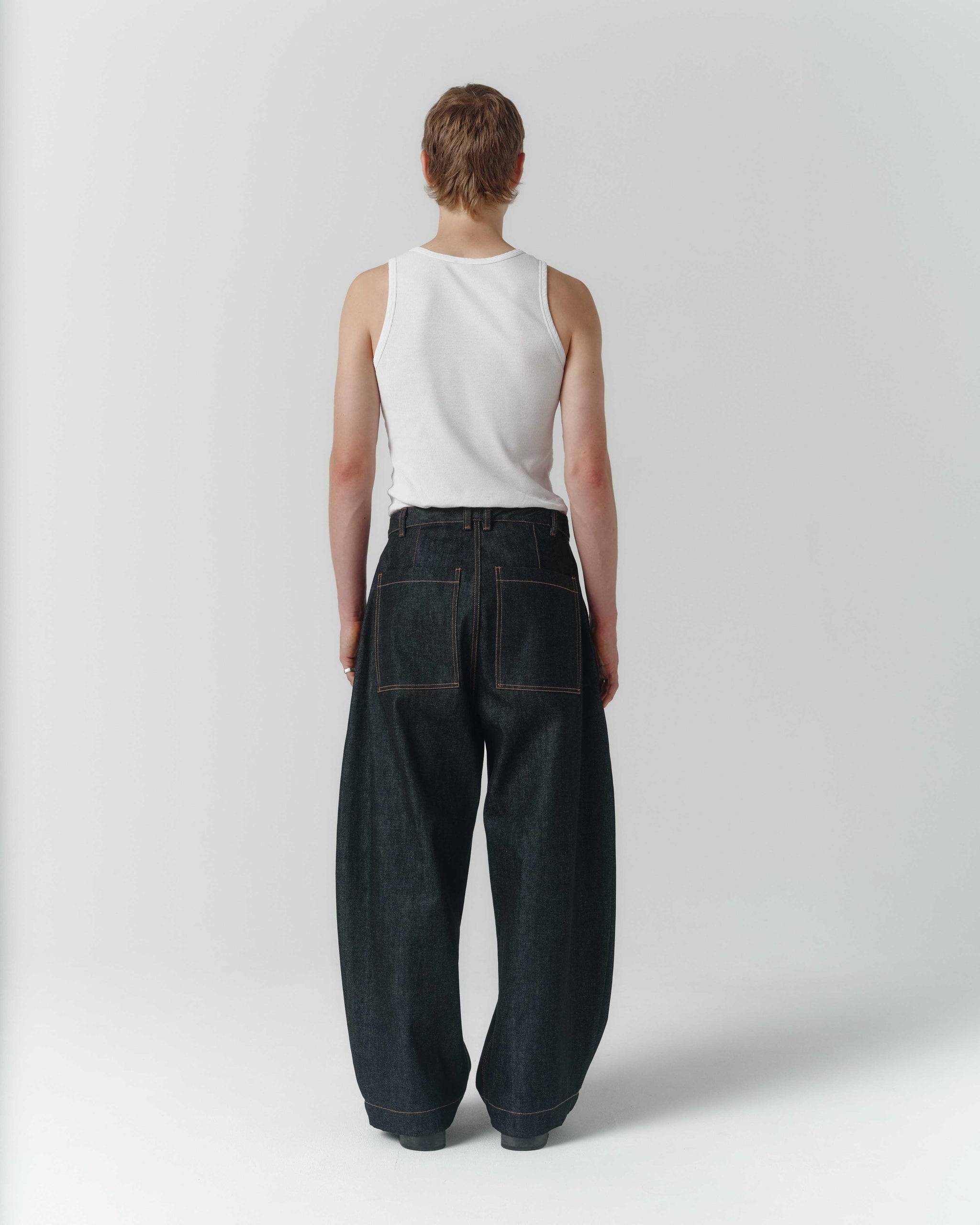 The Volume Italian Denim Trouser is a wide, voluminous silhouette with a full leg, high rise and deep front pleats for an elegant look. Cut from sturdy 12oz Italian denim that will soften, age and gain character over time.